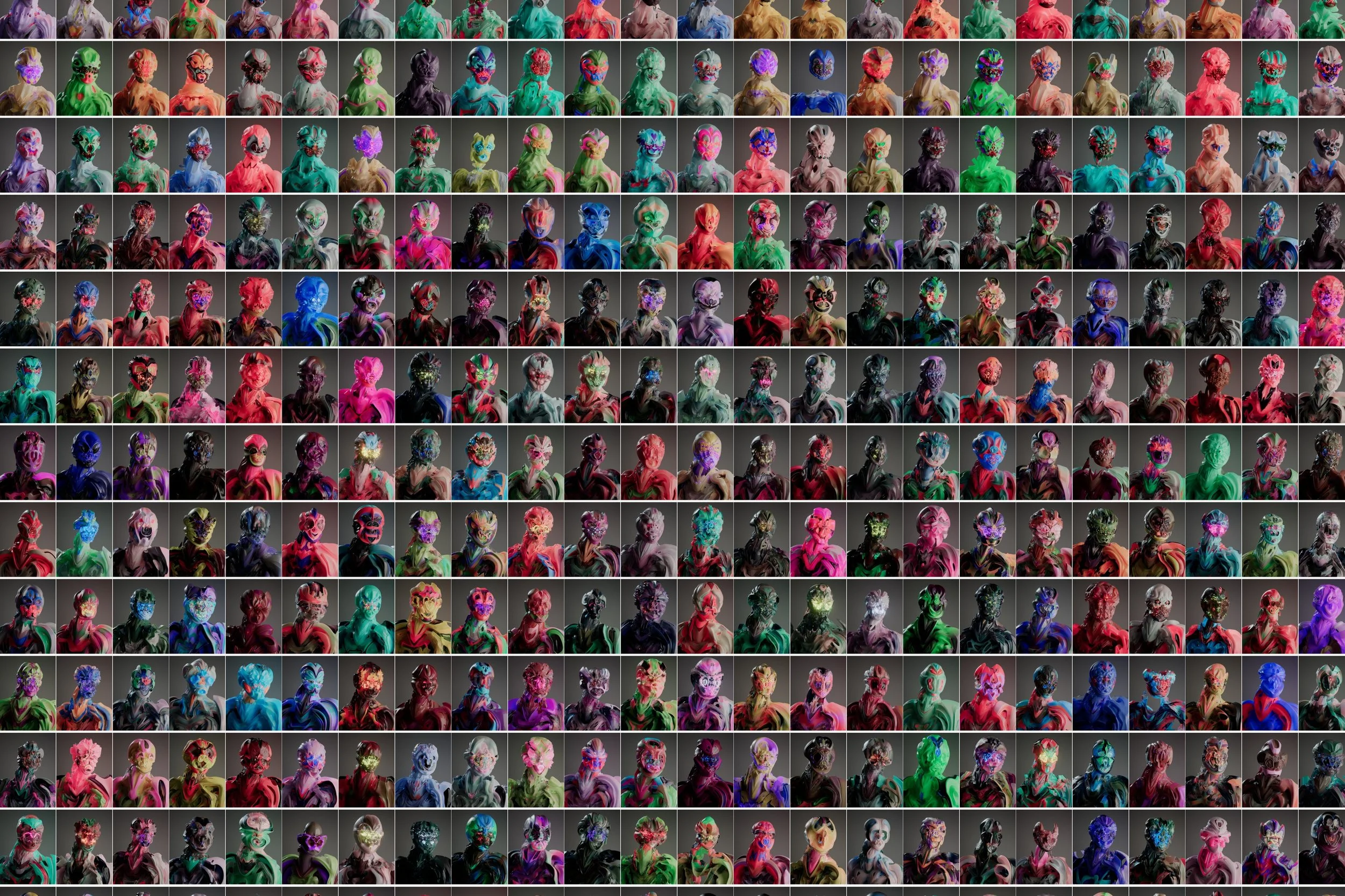 The initial generative process produced 20,000 GNSS entities, which MGXS carefully curated over six months into a pool of 13,333 artworks (133% of the intended supply). Collectors then played a decisive role in shaping the final collection.